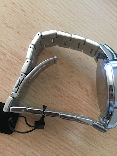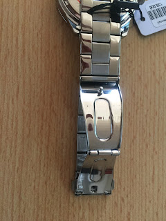 Das Band der Uhr ist aus Stahl. Es wirkt sehr edel weil, es richtig glänzt. Wir fanden es gut dass, das Armband schlicht gehalten wurde. So ist das Rot dann ein wirkliches Highlight, welches sofort ins Auge fällt. Natürlich ist die komplette Uhr ein Highlight. Das Band der Uhr ist noch kürzbar. So passt die Uhr dann auch wirklich an das jeweilige Handgelenk und rutscht nicht runter.